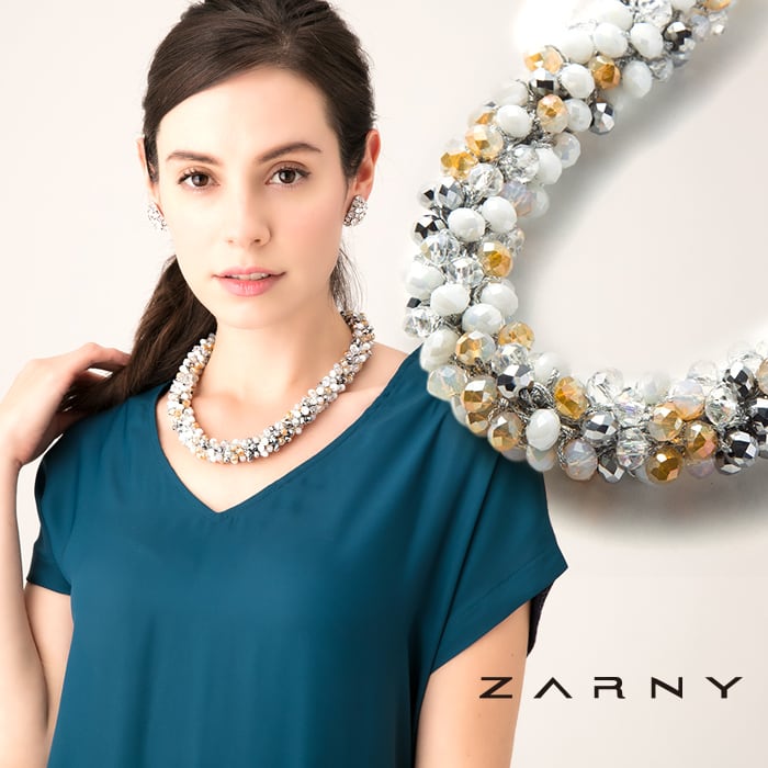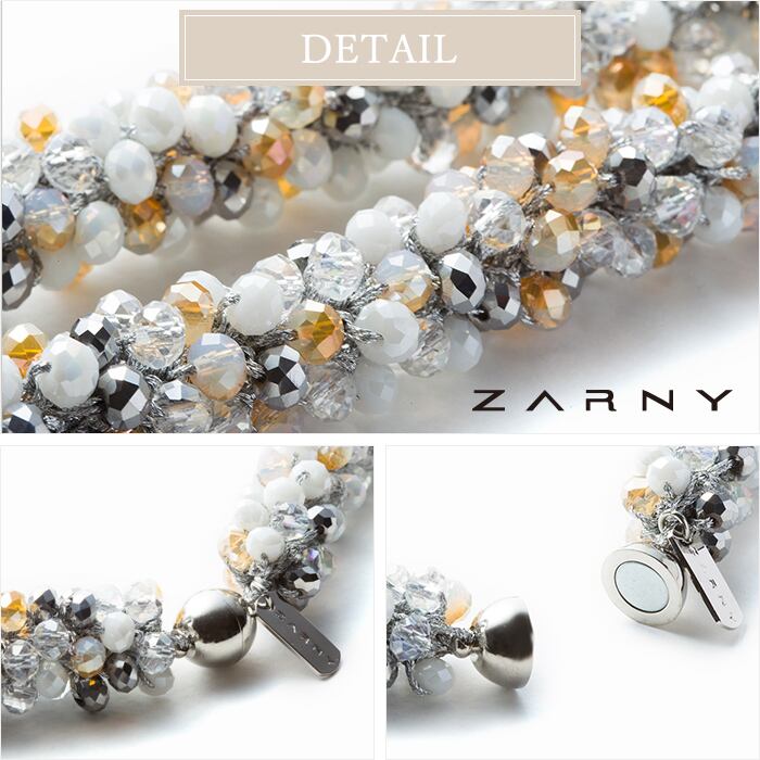 朝日がキラッと光る様子をイメージしました。爽やかなブルーシルバー系に大人のビジューなサイズ感。マグネットにて簡単着脱できるネックレスです。