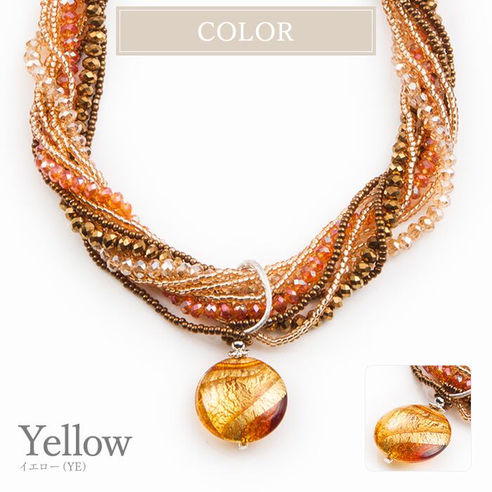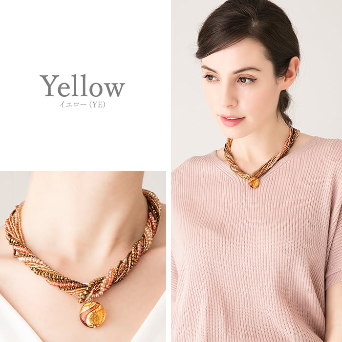 ネックレス ショート ヴェネチアン ベネチアン グラス ガラス アンバー 九連