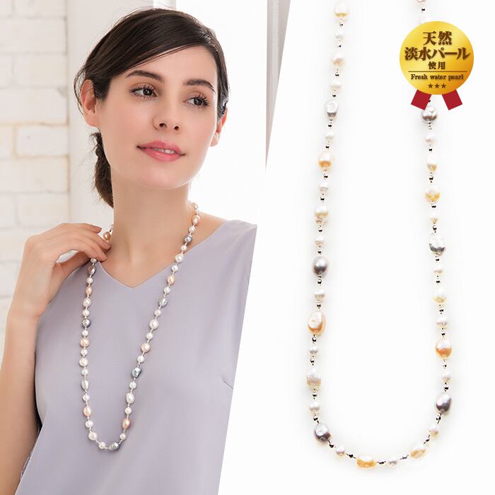 ネックレス ロング 淡水パール 大粒