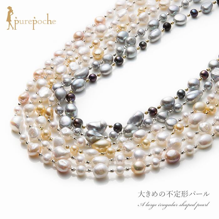 大きめの不定形パールを使いながらこのお値段。非常に人気の商品です。