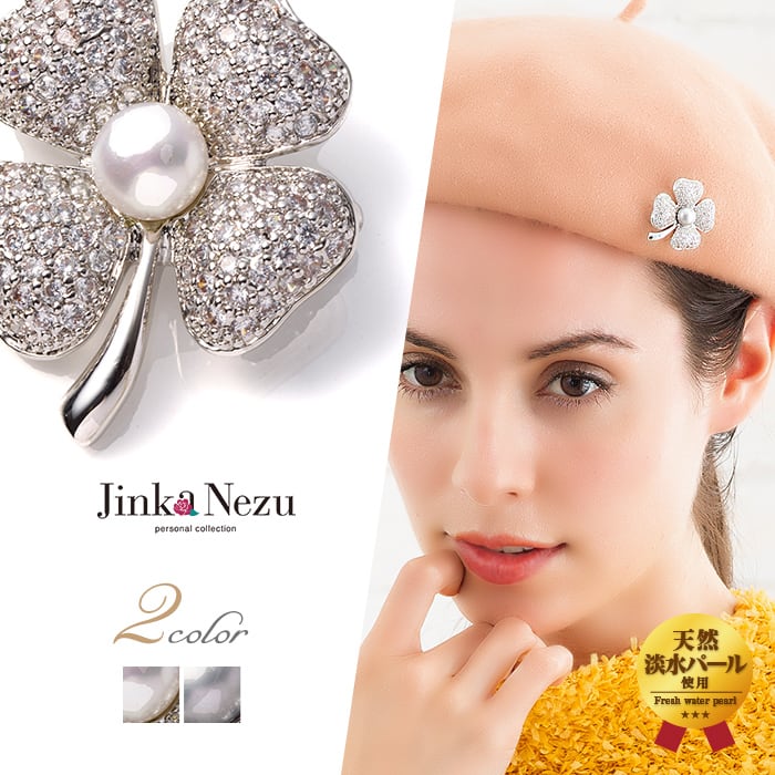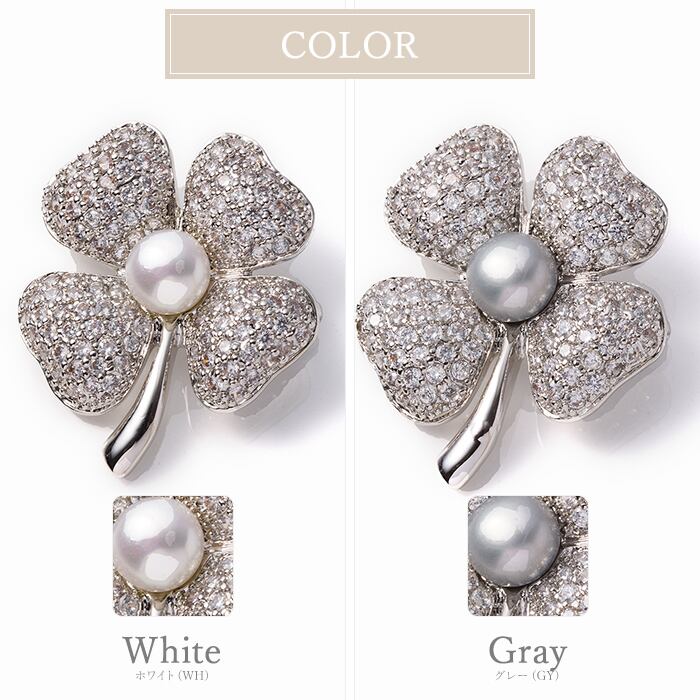 ブローチ 淡水パール キュービックジルコニア クローバー