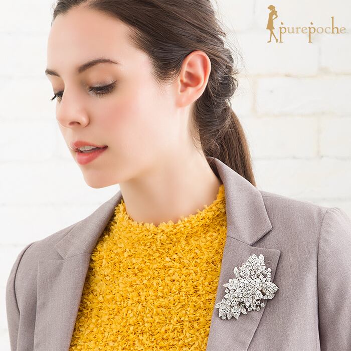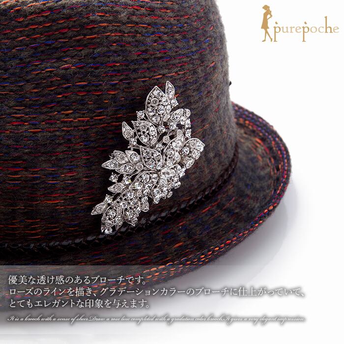 優美な透け感のあるブローチです。ローズのラインを描き、グラデーションカラーのに仕上がっていて、とてもエレガントな印象を与えます。