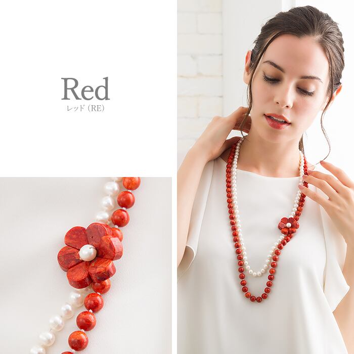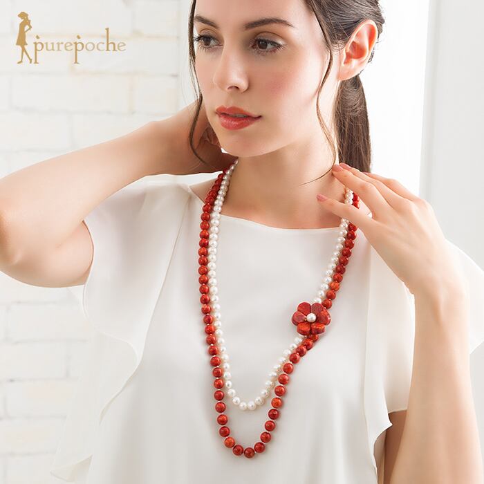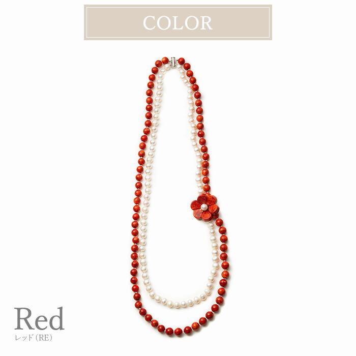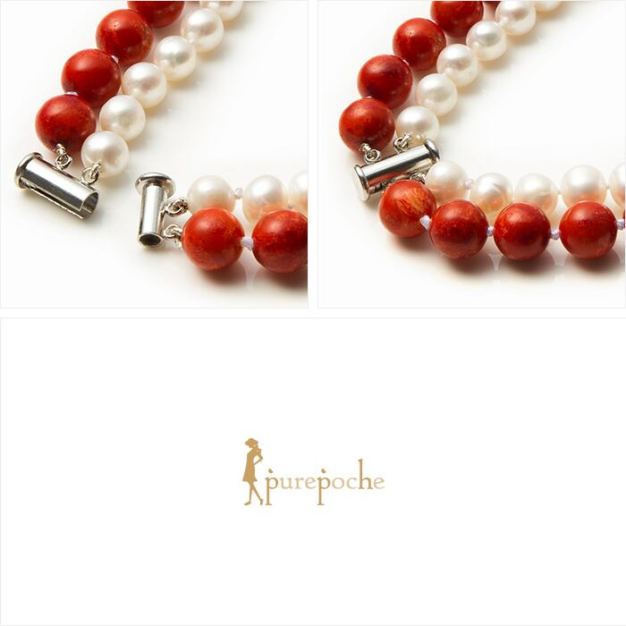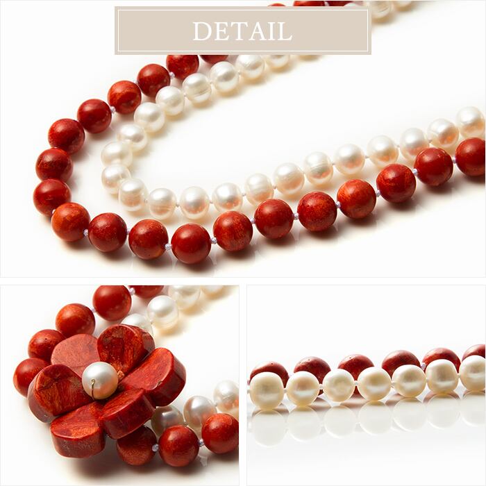 淡水パール (12mm 8mm) 珊瑚 (10mm)