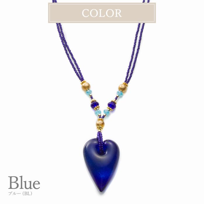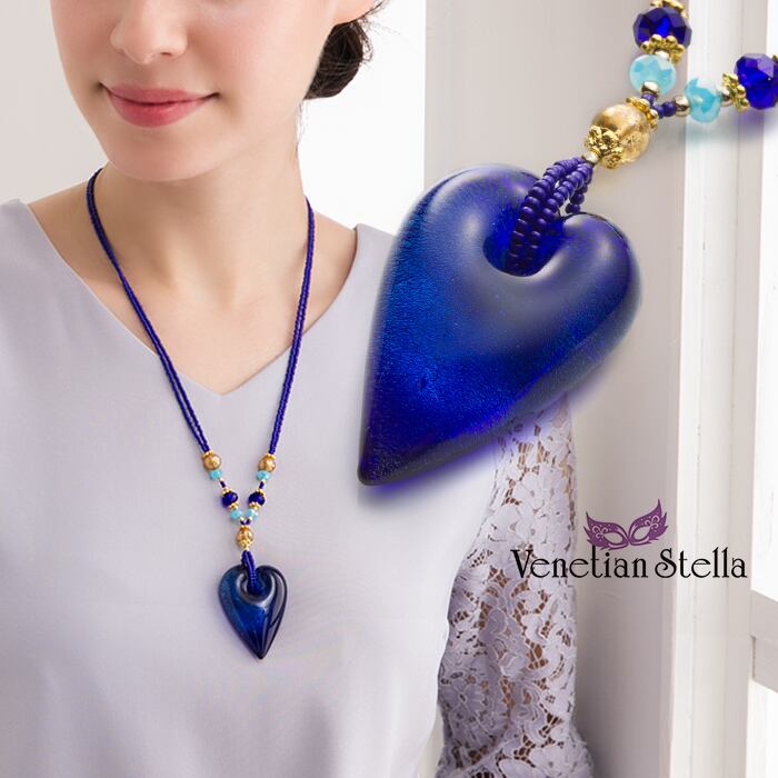 ネックレス ショート ヴェネチアン ベネチアン グラス ガラス ハート 紺碧