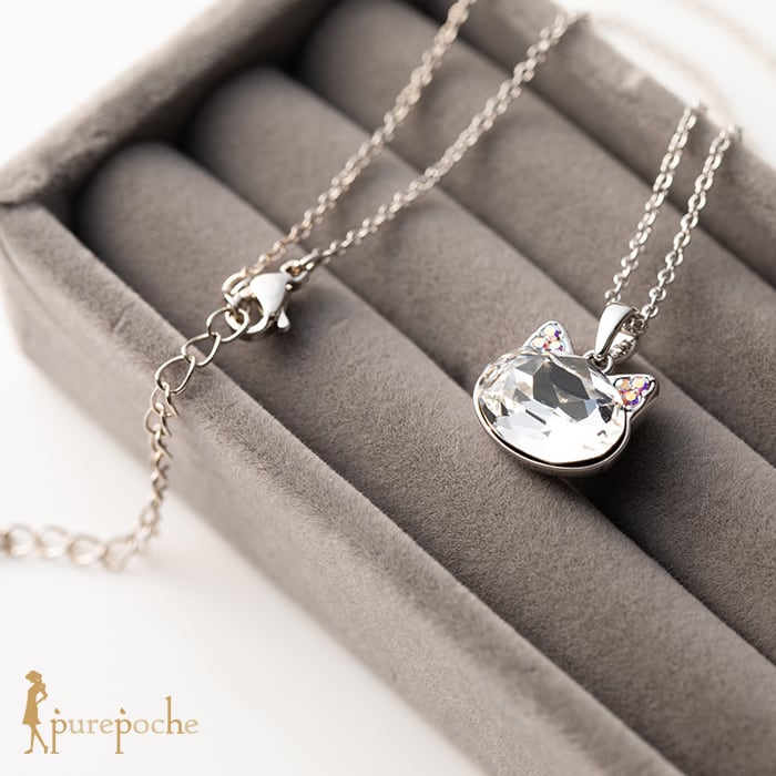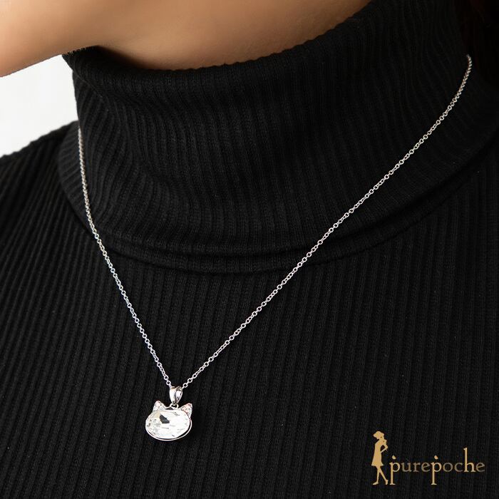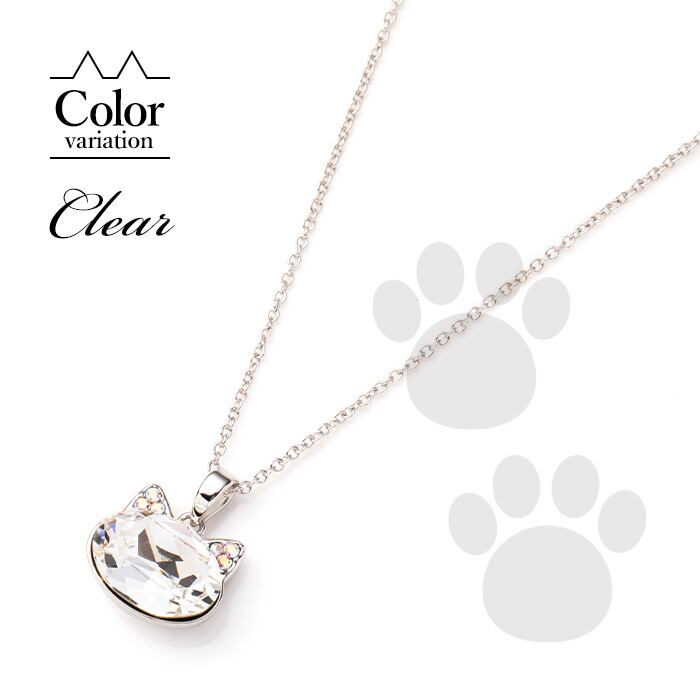 ネックレス ショート クリスタルガラス 猫 ネコ