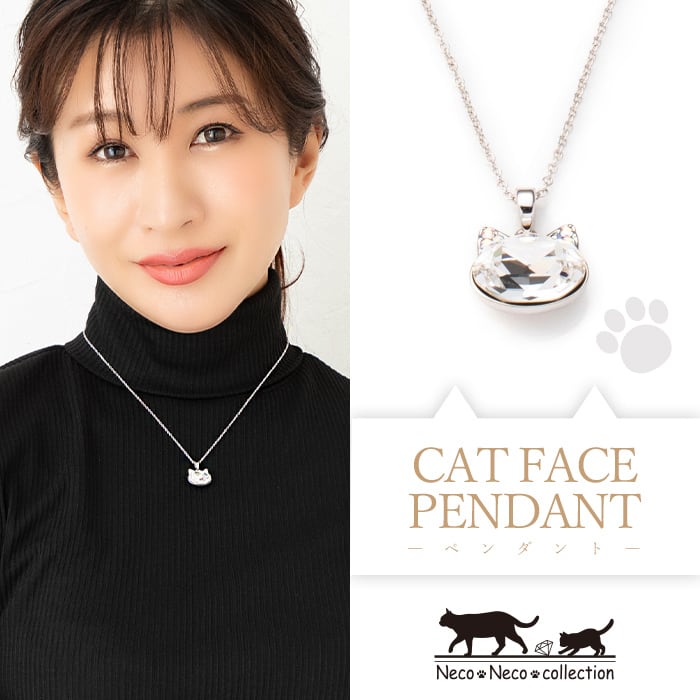 大粒オーバルカットのクリスタルガラスを猫ちゃんのお顔に、耳には6粒のクリスタルをセッテッィングした猫フェイスのペンダントです。動く度に胸元でクリスタルガラスがきらり!と光ります。