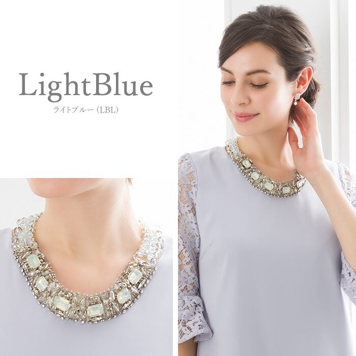 氷の結晶の連なりのようなイメージのネックレス。ニュアンスカラーで氷の冷たさや透明感・表情を表現しております。