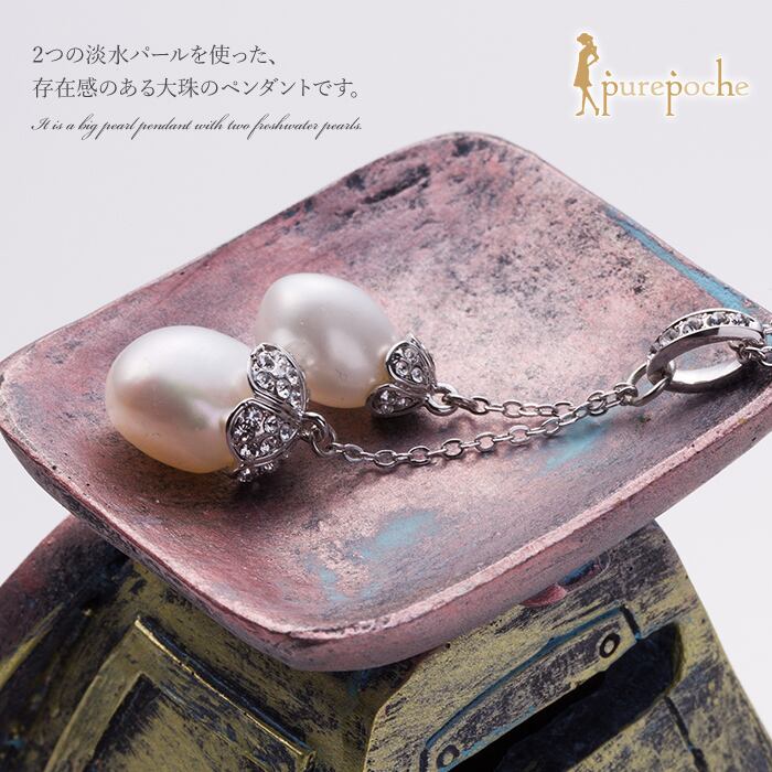 2つの淡水パールを使った、存在感のある大珠のペンダントです。華麗に胸元を彩ります。ファッションにコーディネートしやすいタイプです。