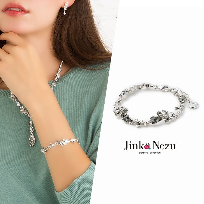 キラキラのクリスタルガラスを使った、2トーンカラーのシンプルキュートなブレスレットです。クリスタルガラスが輝き、華麗に腕元を彩ります。