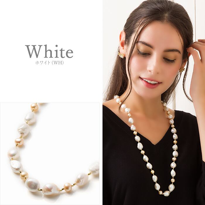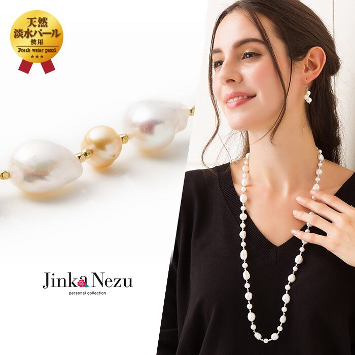 ネックレス ロング 淡水パール バロック 大粒 シャンパンカラー