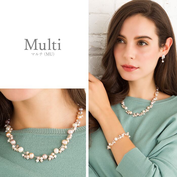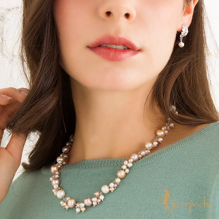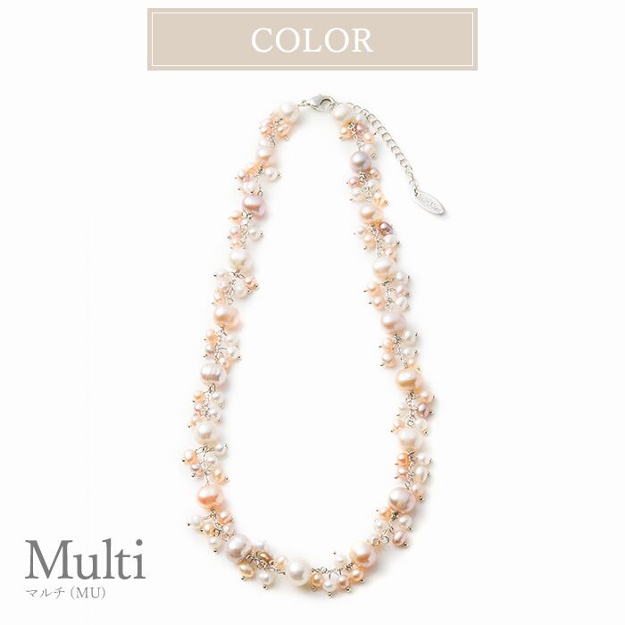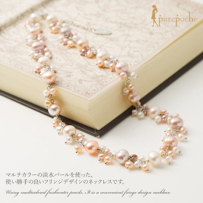 マルチカラーの淡水パールを使った、使い勝手の良いフリンジデザインのネックレスです。