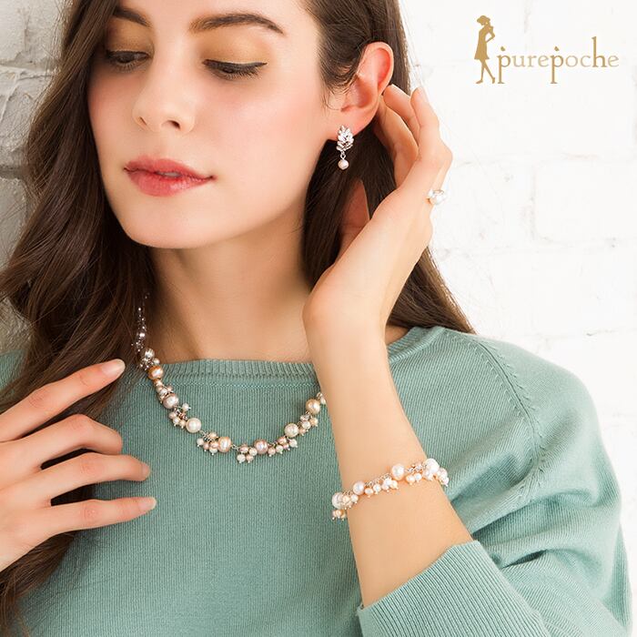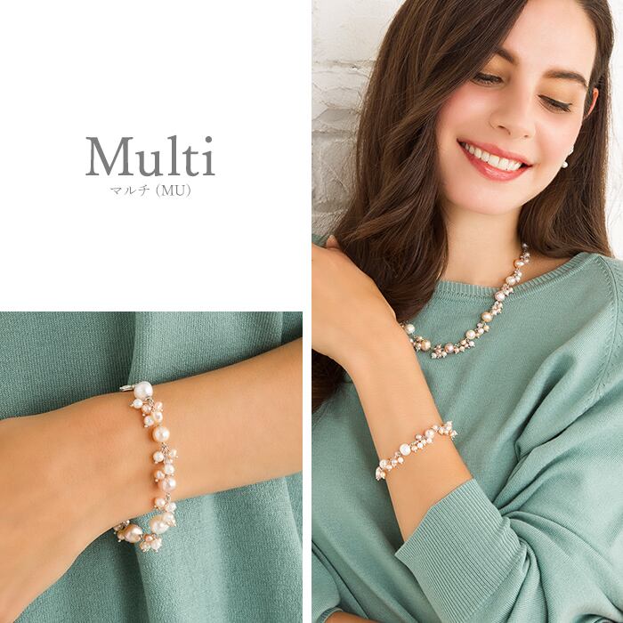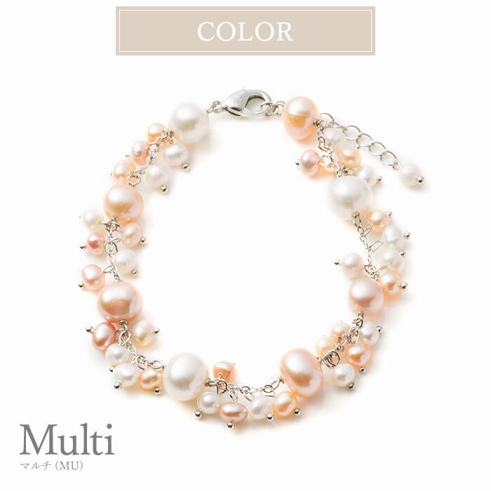 マルチカラーの淡水パールを使った、使い勝手の良いフリンジデザインのブレスレットです。