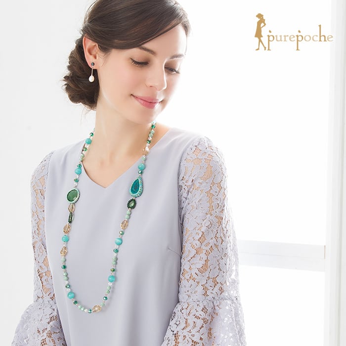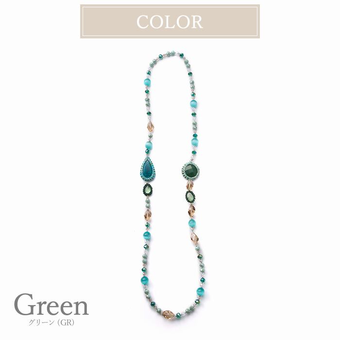ネックレス ロング ガラス ピーコック ターコイズ ブルー ミックス