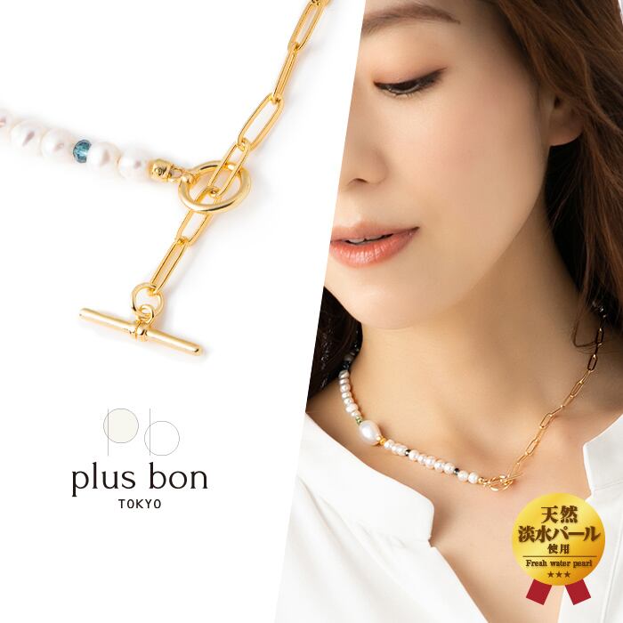 ネックレス ショート 淡水パール バロックパール チェーン トグル ゴールド