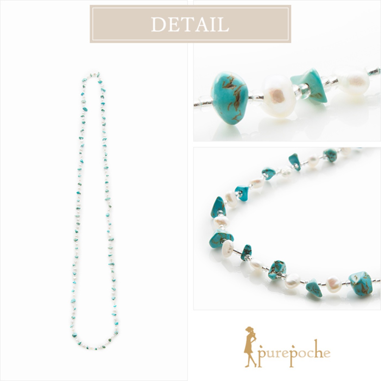 鮮やかなブルーがアクセントになったネックレスです。カジュアルスタイルに合わせるのがお勧めです。
