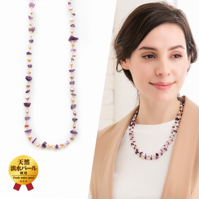 淡水パール (約4.0mm〜約6.0mm) アメジスト (約3.5mm〜約5.5mm) ガラスビーズ