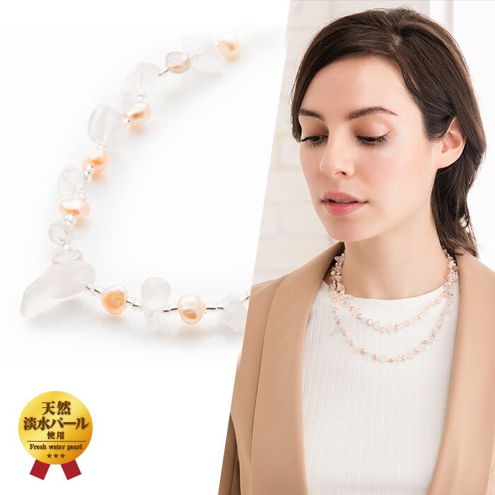 淡水パール(約4.0mm〜約6.0mm) ローズクォーツ (約3.5mm〜約5.5mm) ガラスビーズ