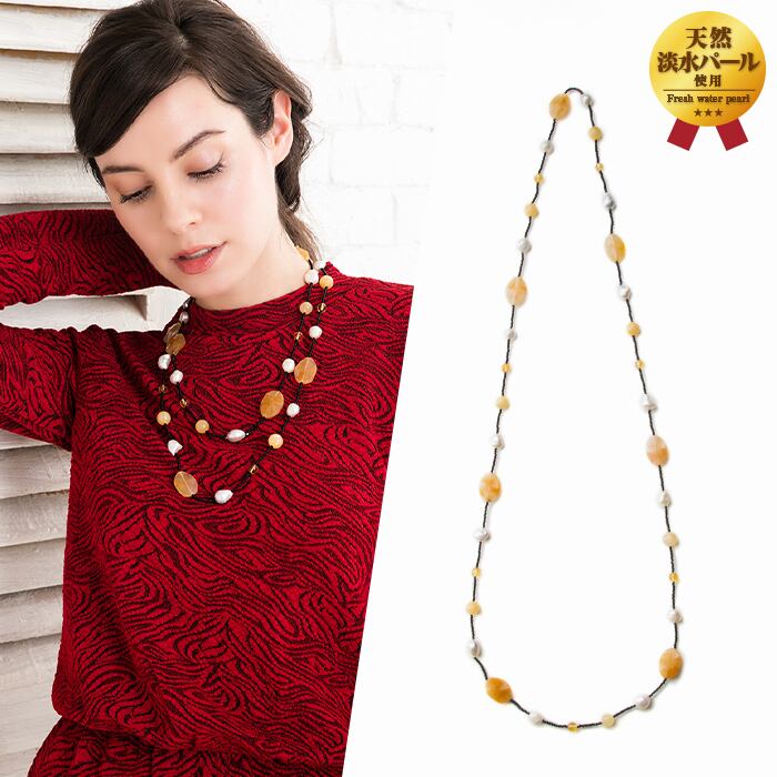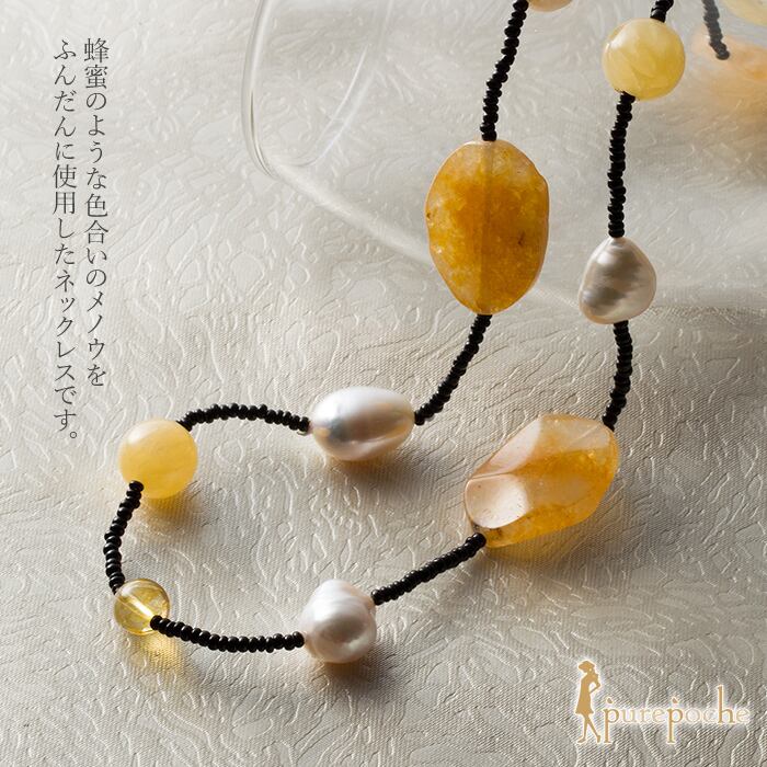蜂蜜のような色合いのメノウをふんだんに使用したネックレスです。オールシーズンご利用いただけます。