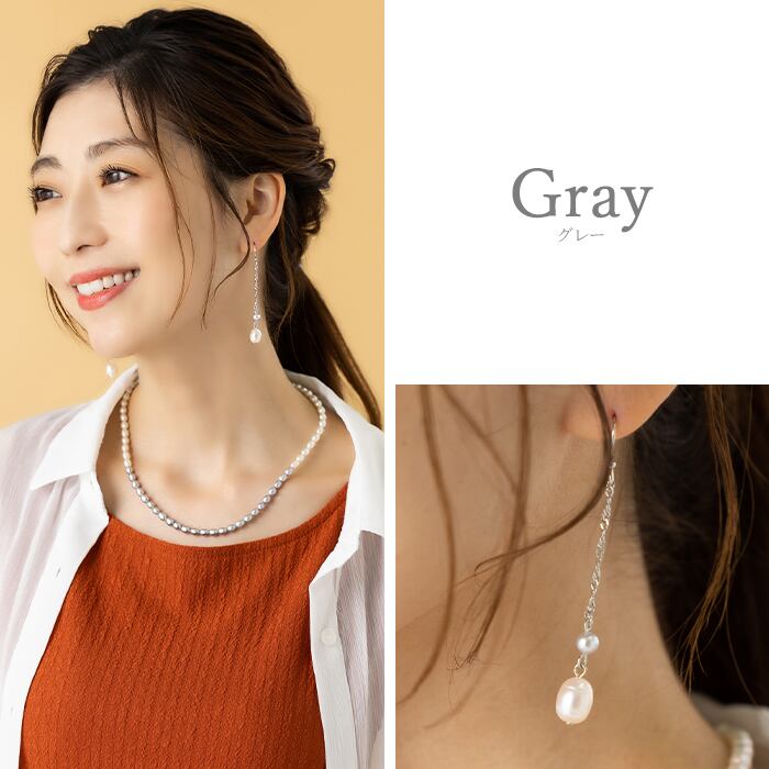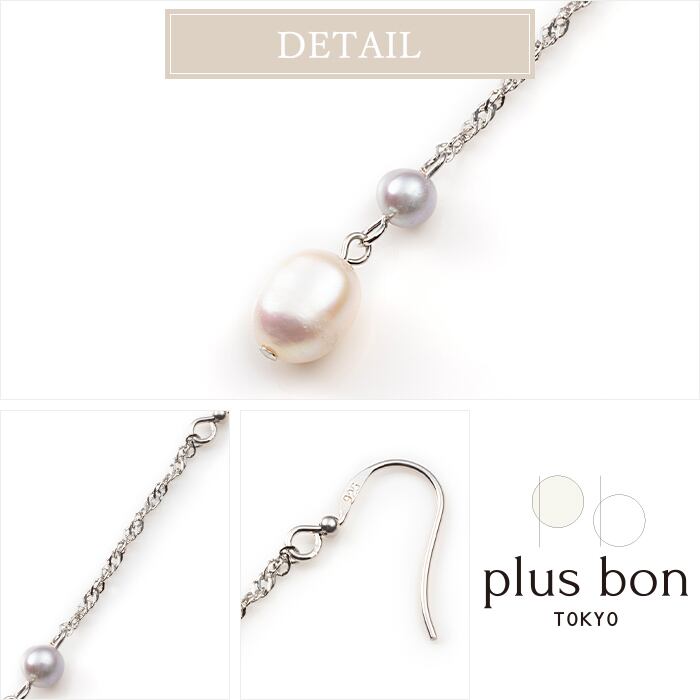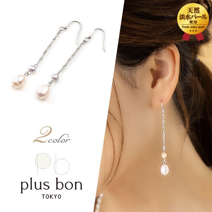 ピアス 淡水パール ケシパール 長めチェーン 揺れる シンプル