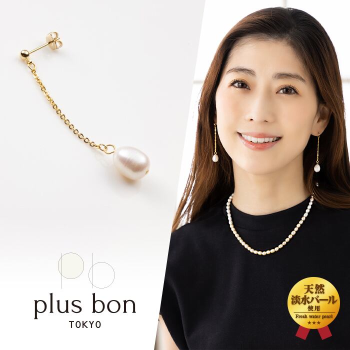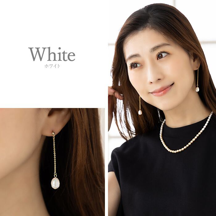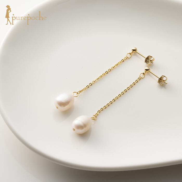 オーバルの淡水パールひと粒がぶら下がるピアス。
