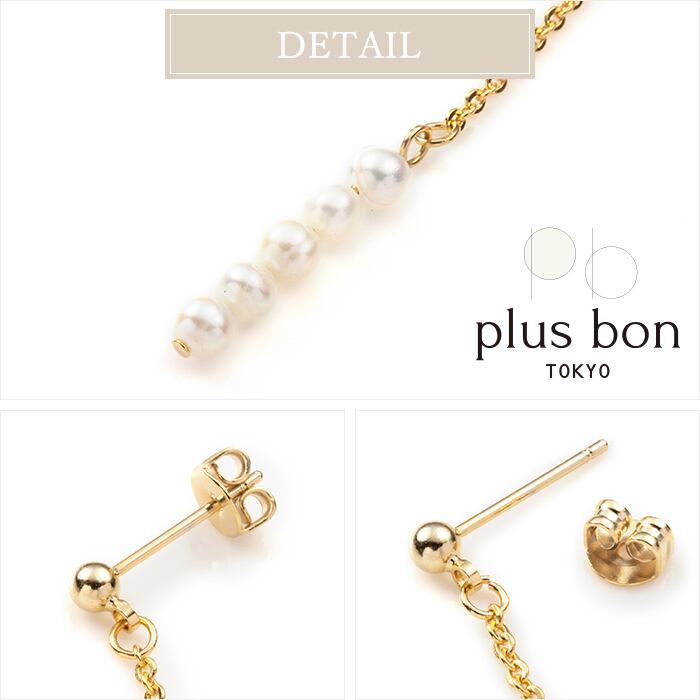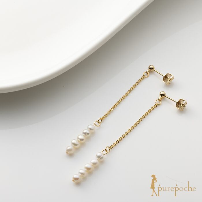 3粒のベビー淡水パールがチェーンの下部にぶら下がるシンプルなピアス。