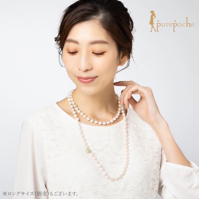 整ったオーバル型の淡水パールと優しい色味のヴェネチアンガラス1粒を使ったデザインショートネックレス。