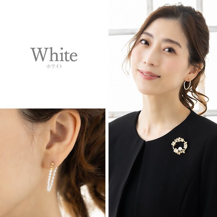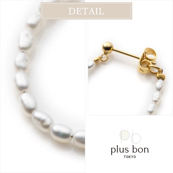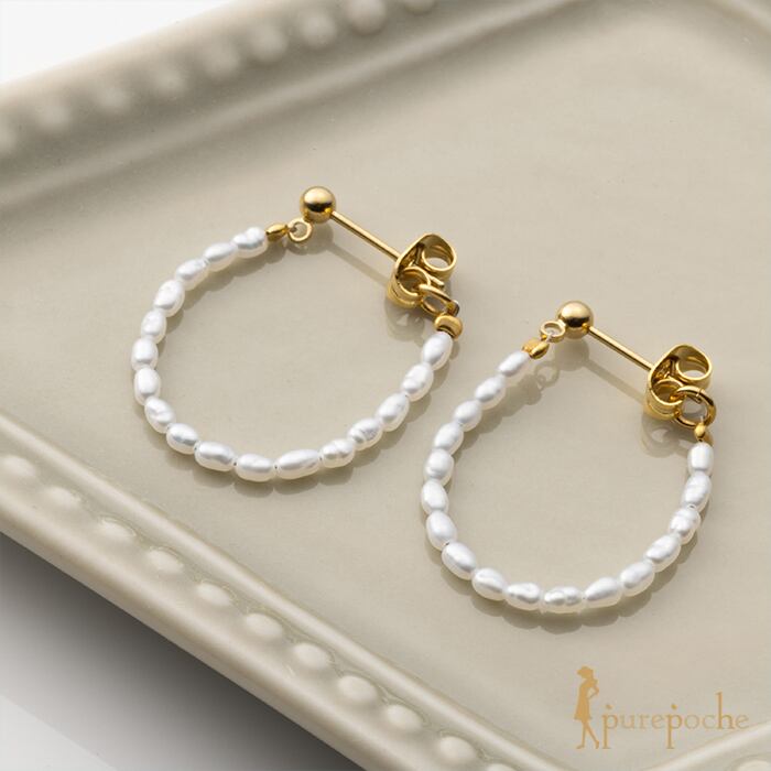 ライスのベビーパールを使ったピアス。軽くて着けやすく、つけると雰囲気が良く素敵です。