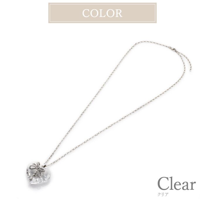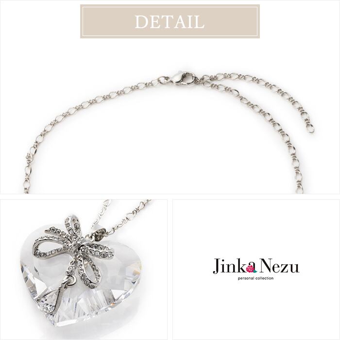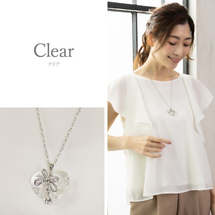 大粒のハートシェイプのクリスタルガラスにポイントでリボンを乗せたペンダントです。