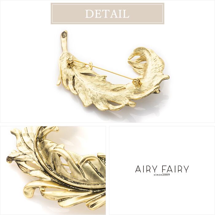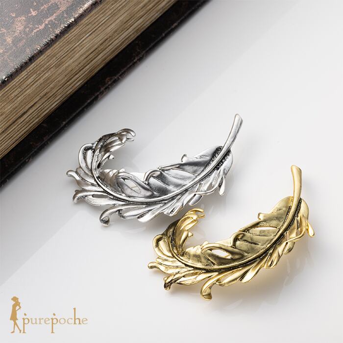 メタル素材のみを用いて、アンティーク調のフェザーモティーフに仕立てました。