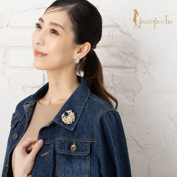 マグネットタイプなのでデリケートなお洋服などにも針穴を開けずに装着でき、着け外しも簡単。襟元のほか、ストールや帽子のアクセントとしてもお楽しみいただけます。