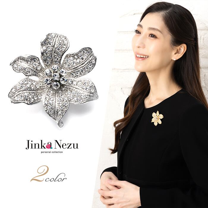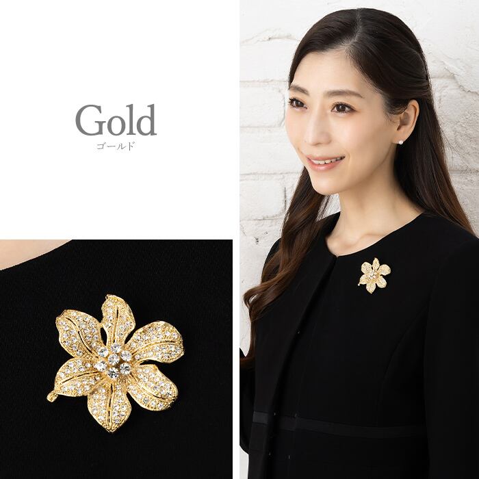 咲き誇るお花をイメージしたフラワーブローチです。クリスタルガラスを100石以上使用した豪華な仕上がり。溢れる煌めきで装いを華やかに彩ります。