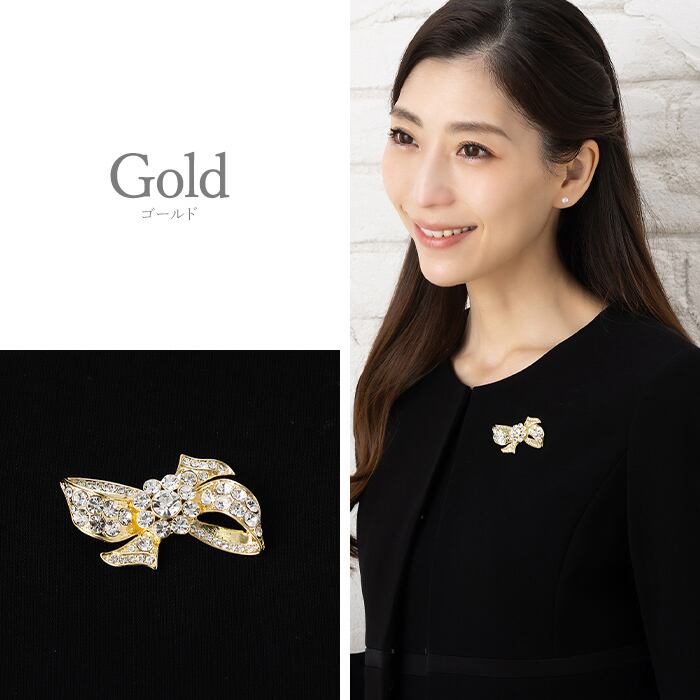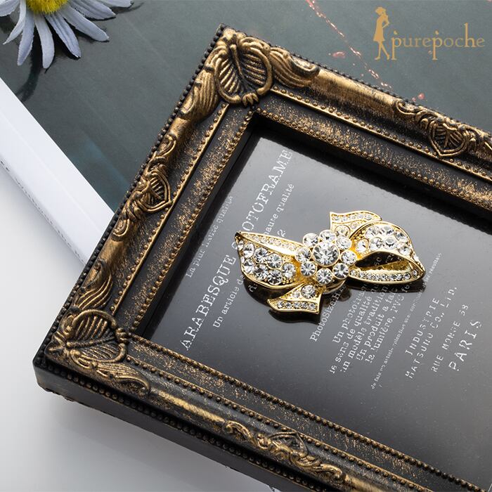 波打つような動きのあるリボンがモチーフのマグネットブローチ。55石以上のガラスを用いてリボンを装飾し、美しい煌めきを放つ豪華な仕上がりです。