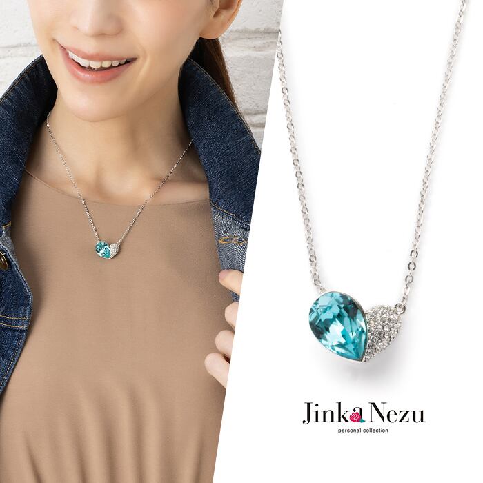 コロンとしたフォルムが可愛いらしいクリスタルガラスを用いたハートのペンダントです。半面はラウンドシェイプを敷き詰め、もう半面はドロップシェイプのクリスタルガラスを使用しています。